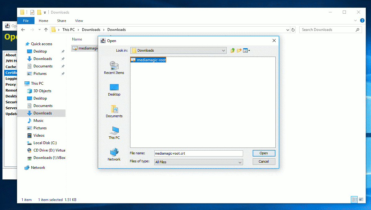 You will need mediamagic-root.crt file from the home page of your AutoMagic Server. Download the file and store it on your desktop.