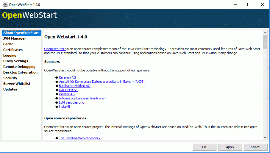 Open the Open Webstart Settings from either the Start Menu or the Application launcher.